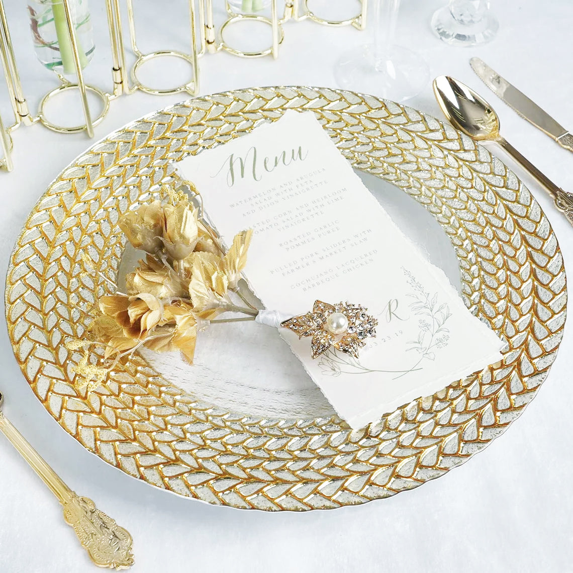 13" Clear Gold Braided Rim Glass Charger Plates (8pcs)