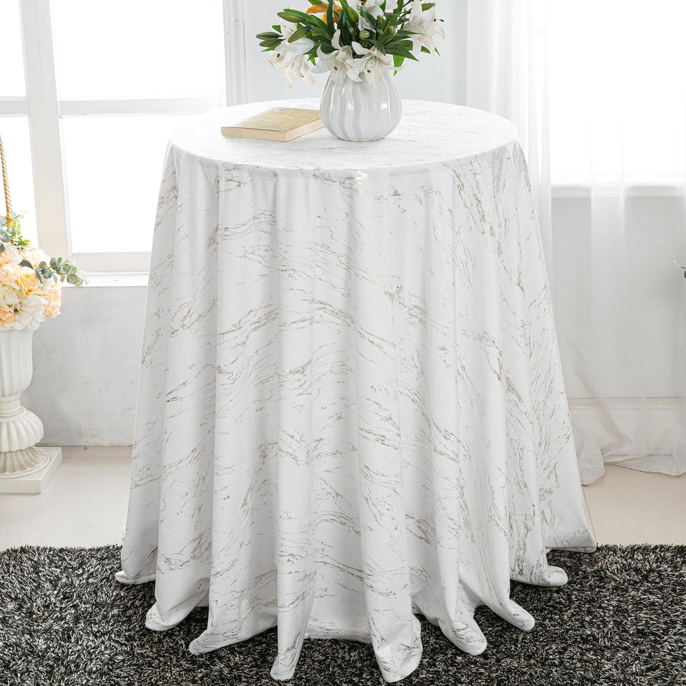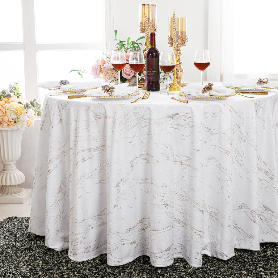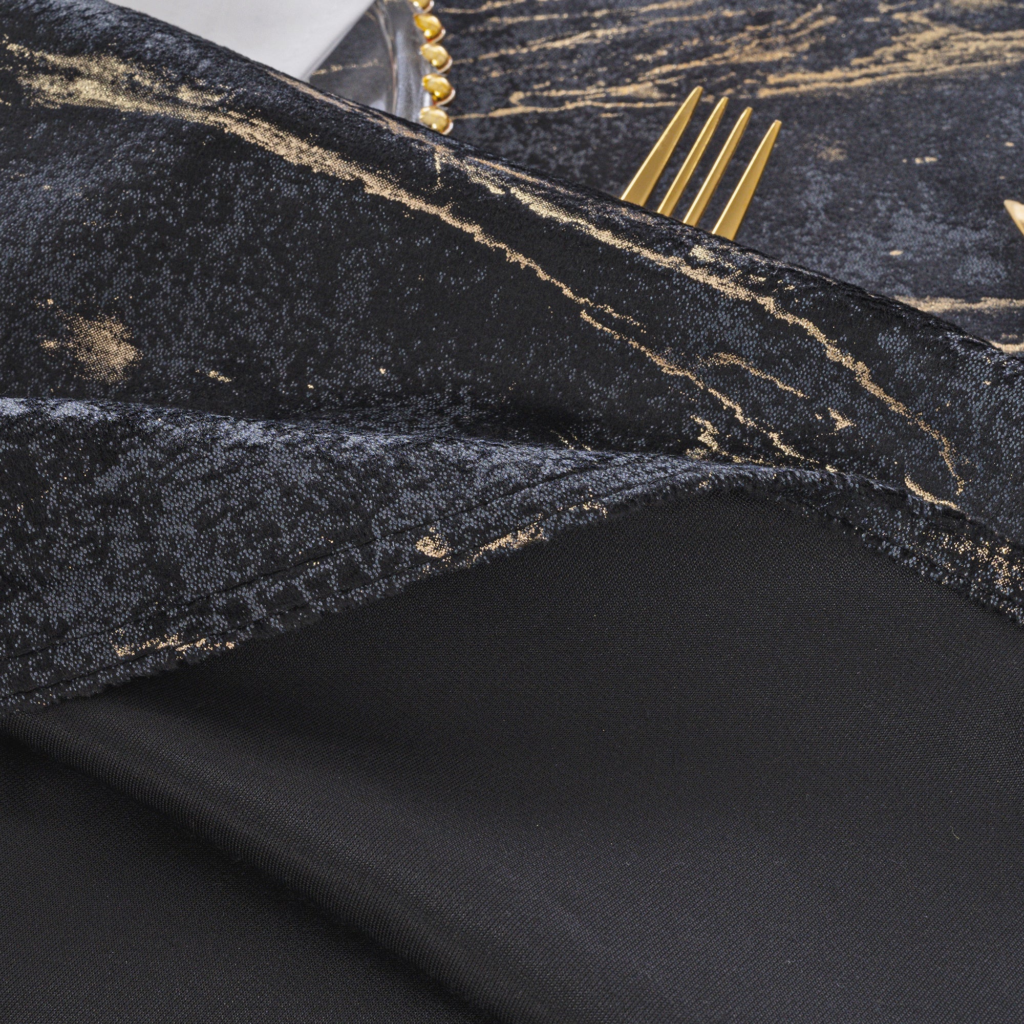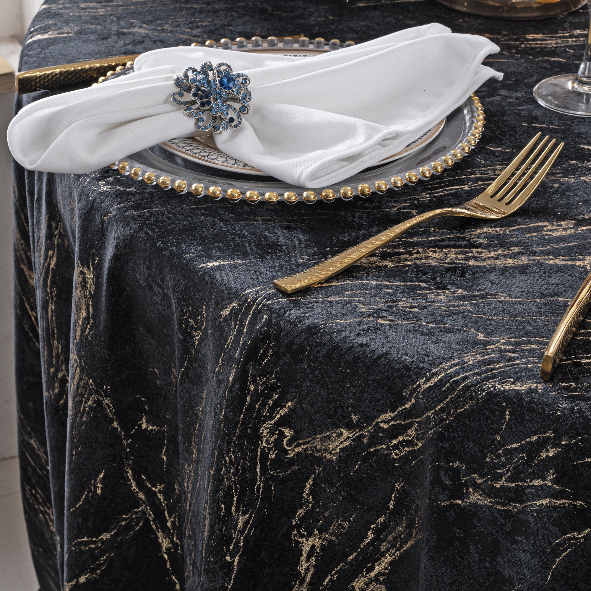 132" Round Gilded Marble Holland Velvet Tablecloth - Black (1pc)