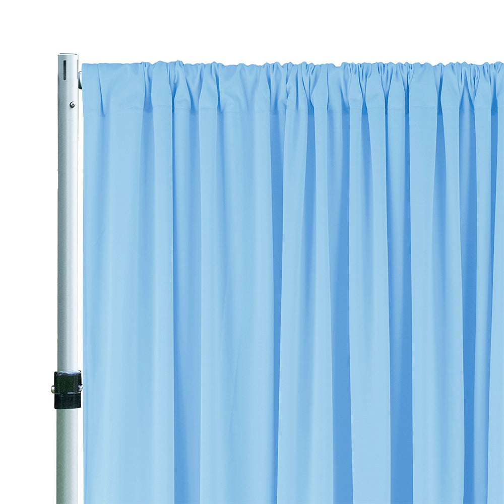 Diseñadas pensando en la comodidad, nuestras cortinas cuentan con bolsillos para barras en ambos extremos, lo que le ofrece la flexibilidad de agregar una barra transversal adicional para diseños complejos que dejarán una impresión duradera. Eleve aún más su evento combinando nuestras cortinas de fondo con nuestros exquisitos manteles de buceo para crear un ambiente perfecto y cohesivo.