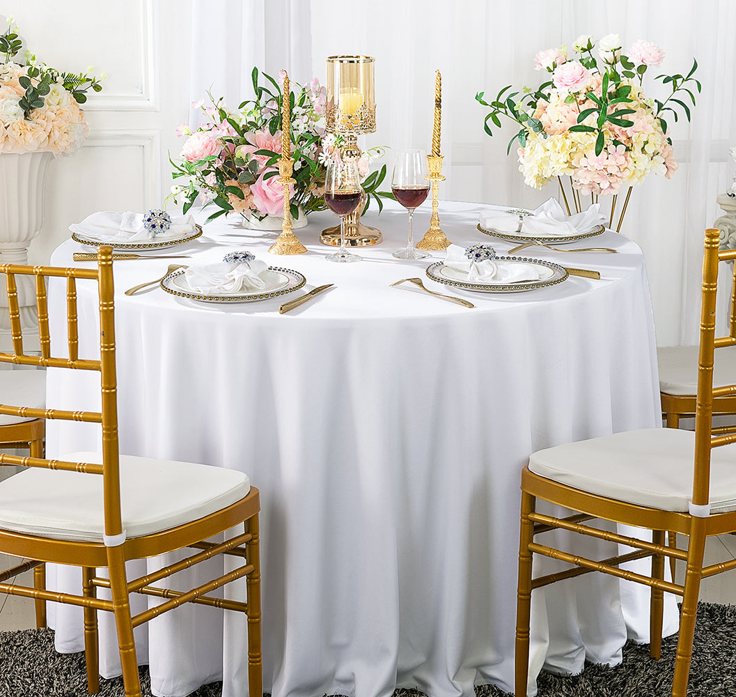 Présentation de notre nappe de plongée ronde sans couture de 108 pouces, conçue pour rehausser le décor de votre événement sans effort. Fabriquée à partir de tissu de plongée de haute qualité, cette nappe offre une apparence sans couture et sans plis , assurant un look poli et professionnel pour les mariages, banquets, conférences et plus.