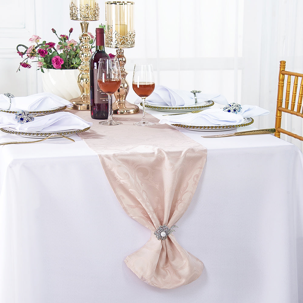 Chemins de table en polyester jacquard damassé Versailles Chopin 12"x 108" - Rose blush/or rose (1 pièce)