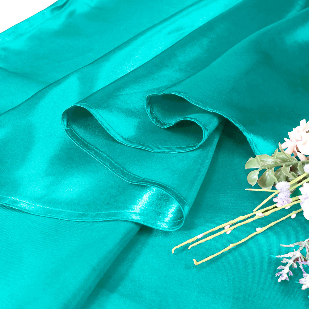 Nos luxueuses nappes en satin sont fabriquées à partir d'un matériau polyester satiné de qualité supérieure, ce qui le rend plus durable que le vrai satin, mais tout aussi beau.