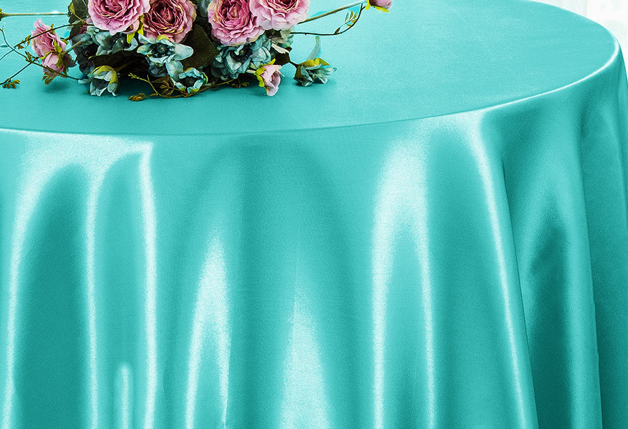 Nappe ronde en satin 120" - Bleu piscine (1pc)