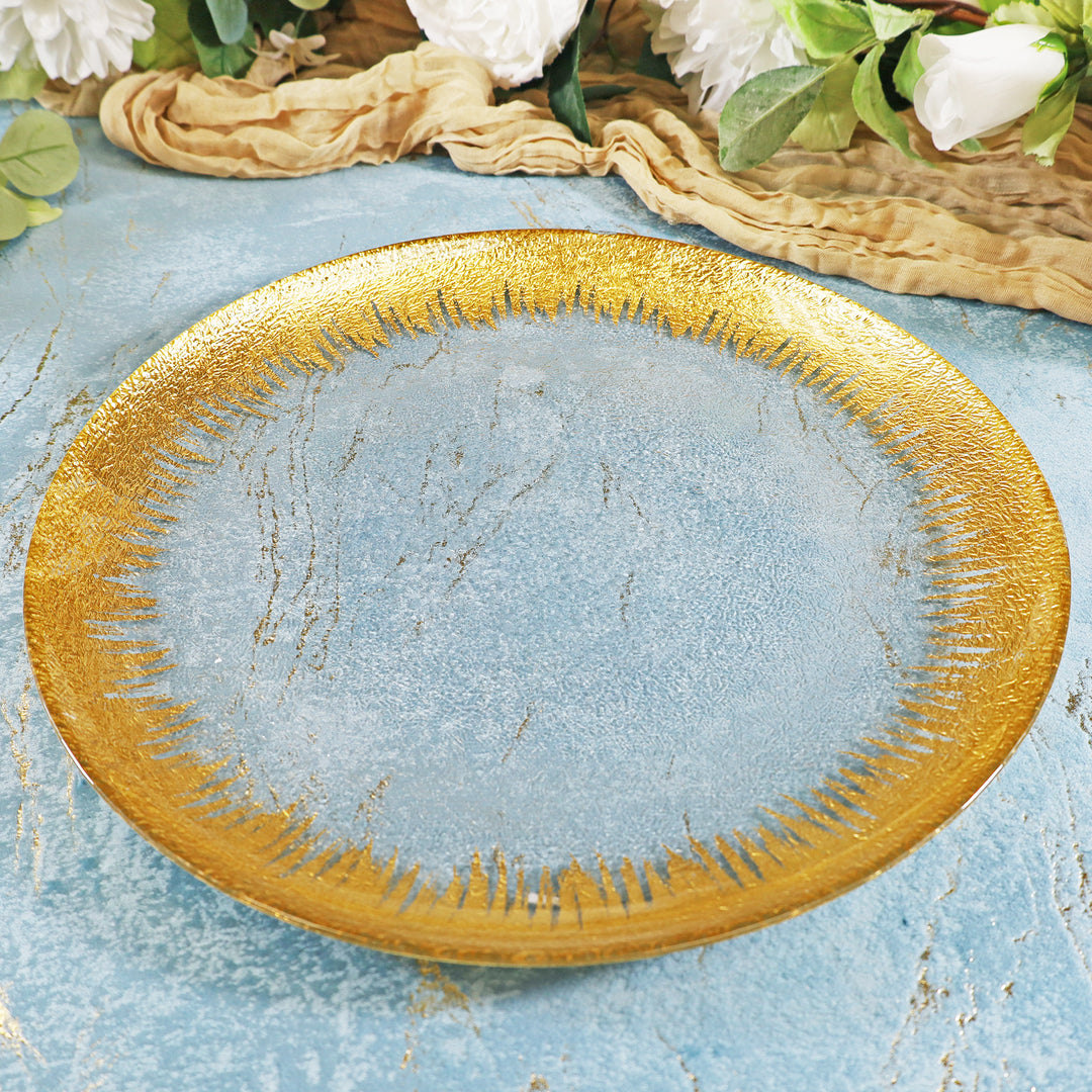 13" Clear Gold Foil Brushed Leaf Rim Glass Charger Plates (8pcs)