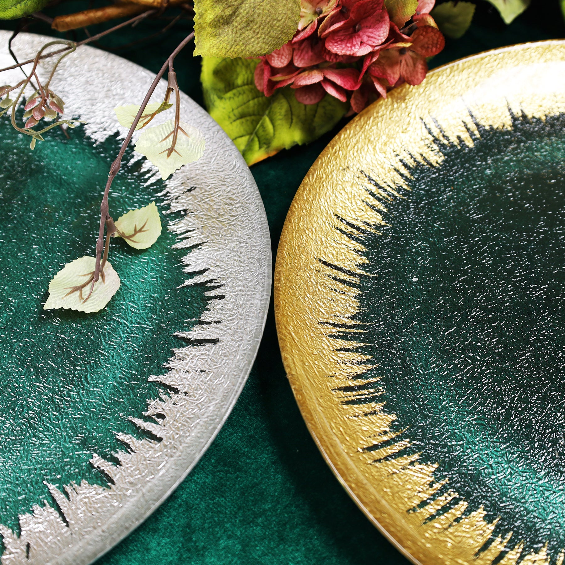 Crafted from high-quality glass, these charger plates combine durability with exquisite artistry. Their 13-inch diameter is ideal for supporting standard dinner plates, while the decorative rim adds a layer of refinement to your table settings.