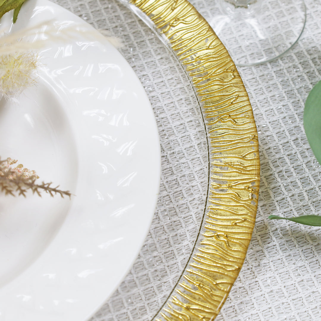 13" Clear Gold Flare Glass Charger Plates (8pcs)