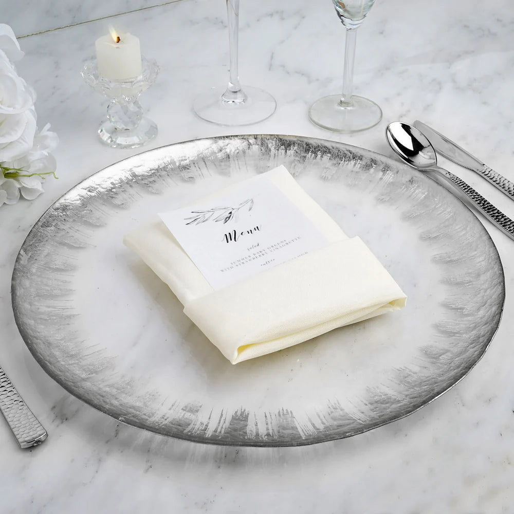 13" Silver Foil Brushed Leaf Rim Glass Charger Plates (8pcs)