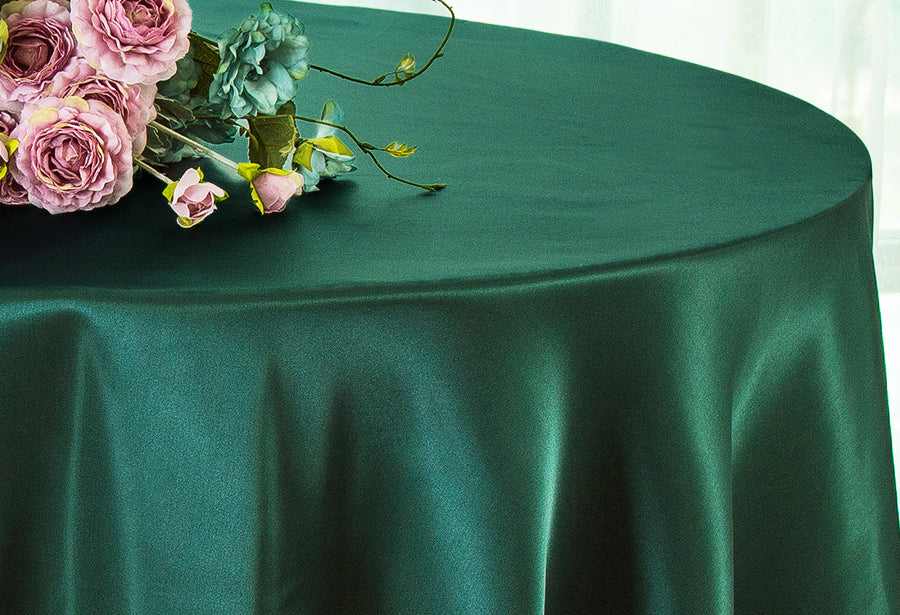132 nappes rondes en satin Vert Chasseur / Vert Houx