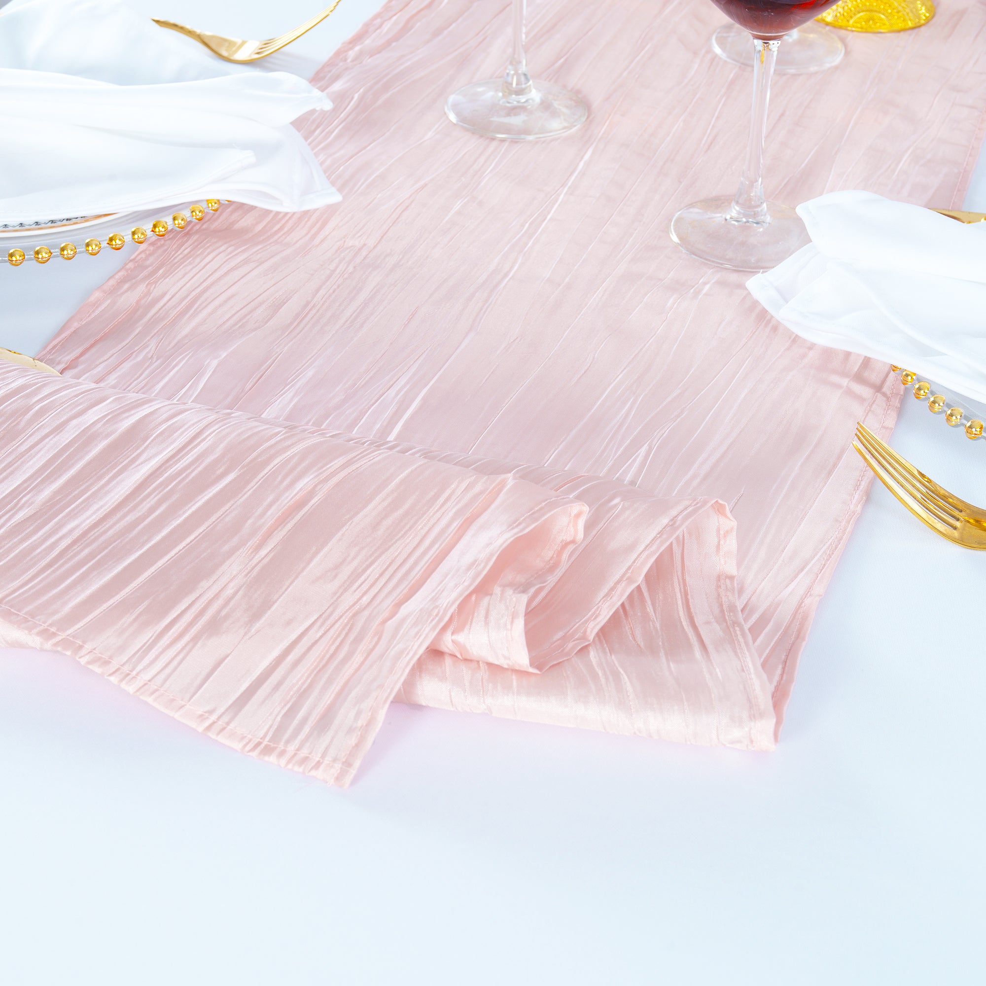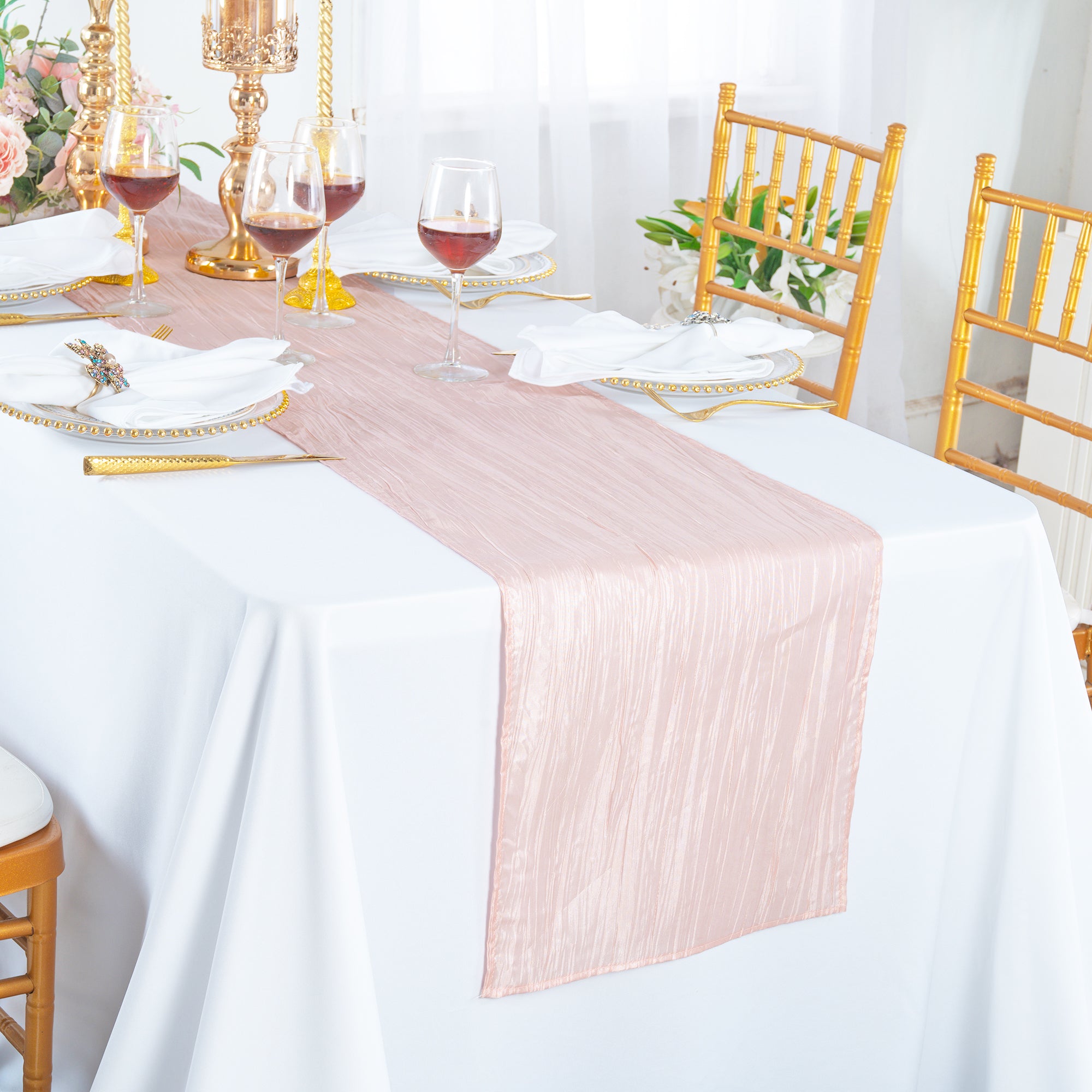 Vente en gros de chemins de table en taffetas froissé écrasé rouge pomme, nos chemins de table de mariage en taffetas écrasé disponibles en 21 couleurs, chemins de table de mariage en taffetas froissé parfaits pour un mariage, une fête.