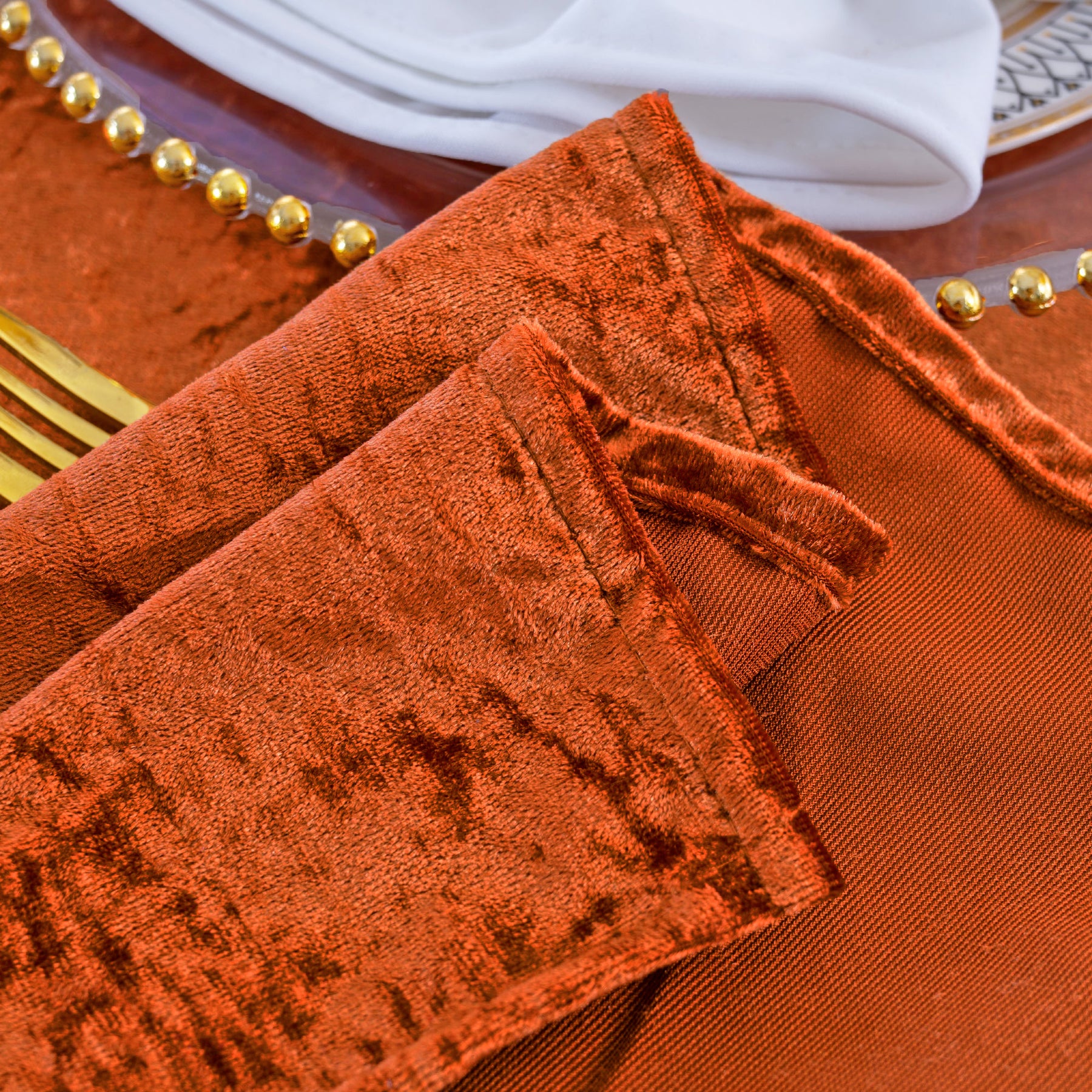 Product: 120" Round Ice Crushed Velvet (200 GSM) Tablecloth - Rust/Burnt Orange (1pc)