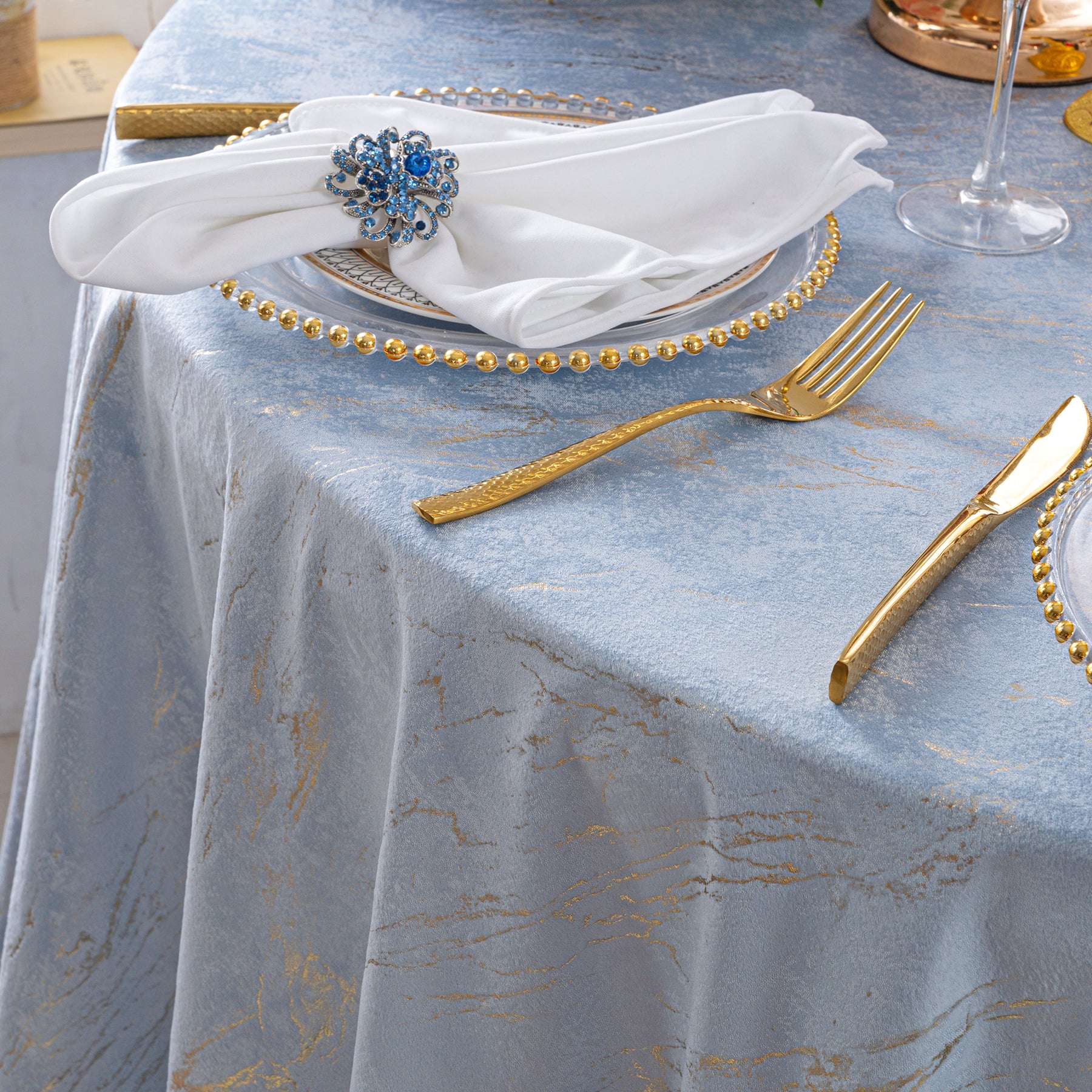 120" Seamless Round Gilded Marble Holland Velvet Tablecloth - Dusty Bl