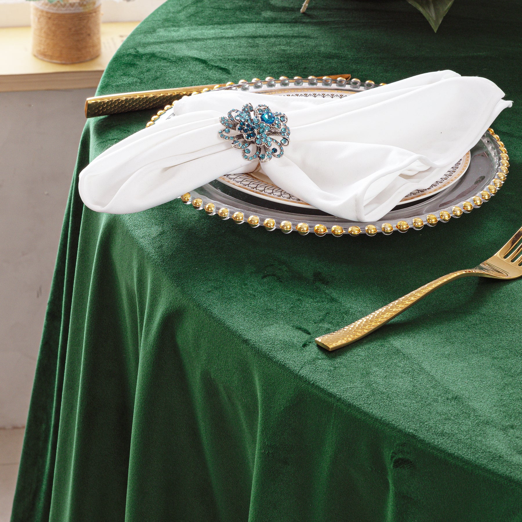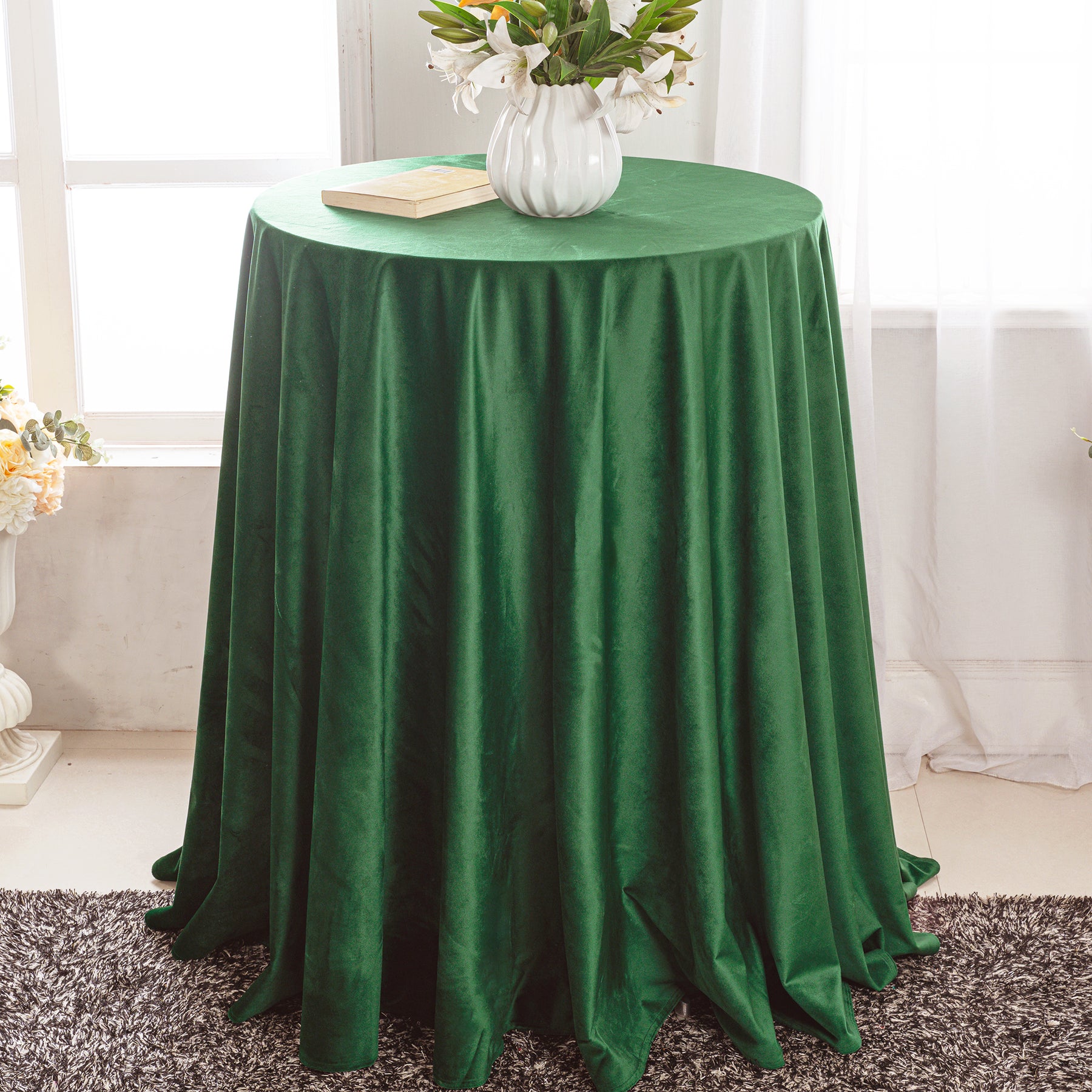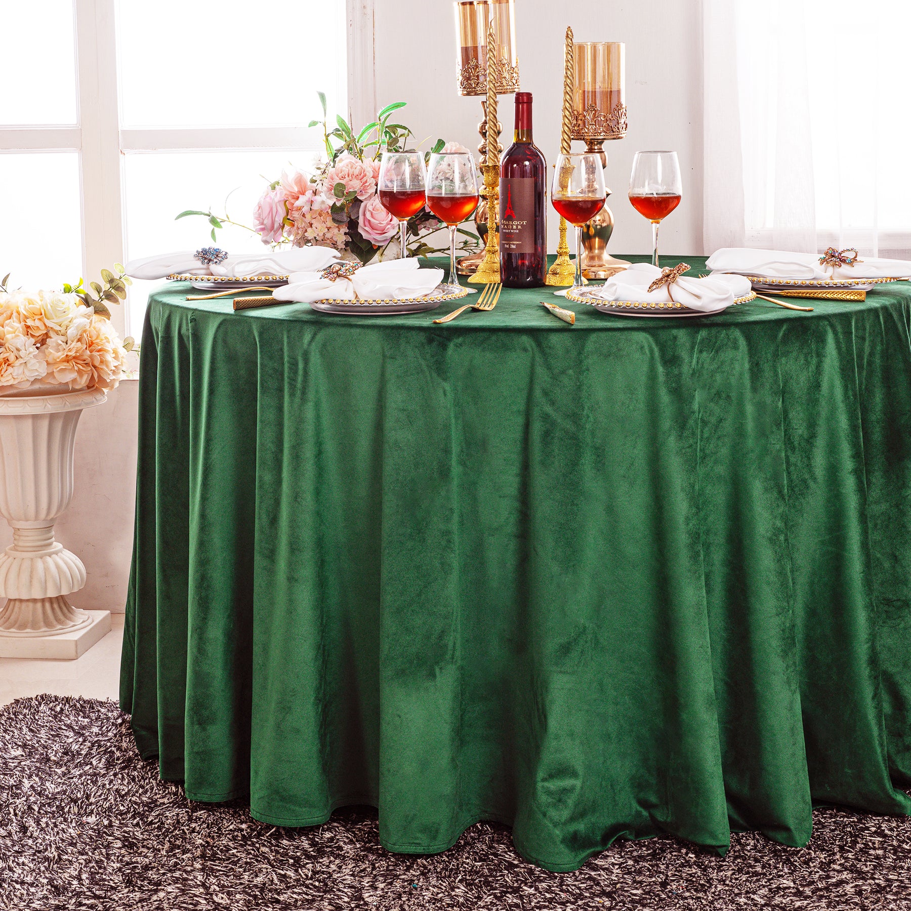 120" Round Seamless Holland Velvet Tablecloth - Emerald Green (1pc)