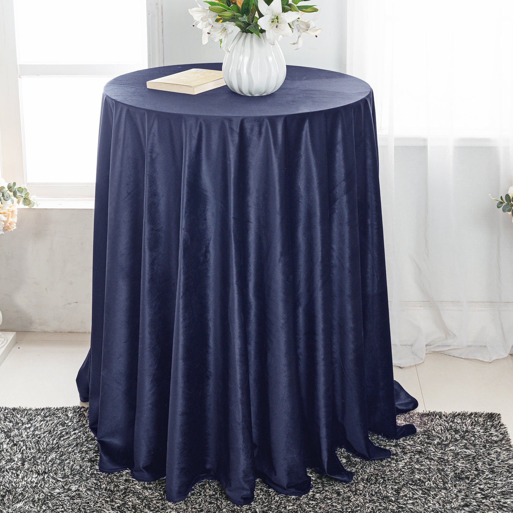120" Round Seamless Holland Velvet Tablecloth - Navy Blue (1pc)