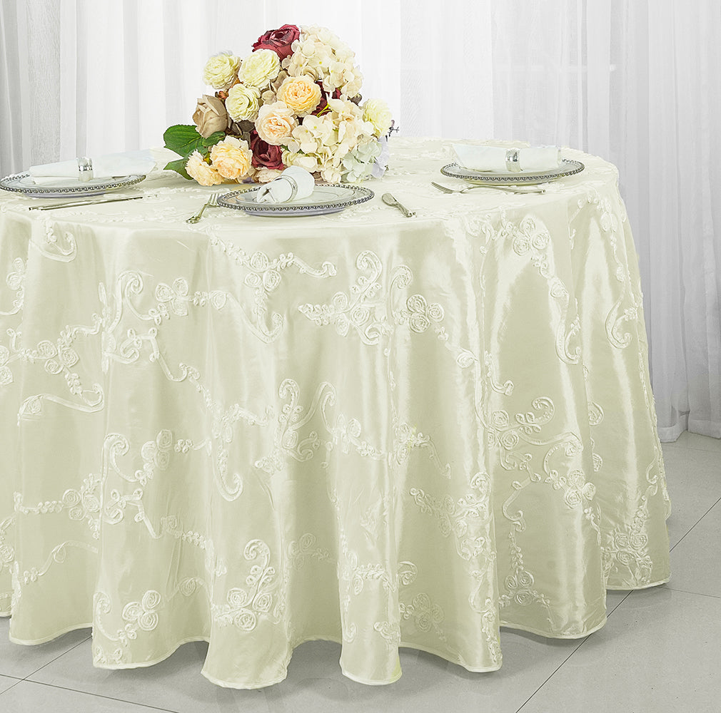 120" Seamless Round Ribbon Taffeta Tablecloth - Ivory (1pc)