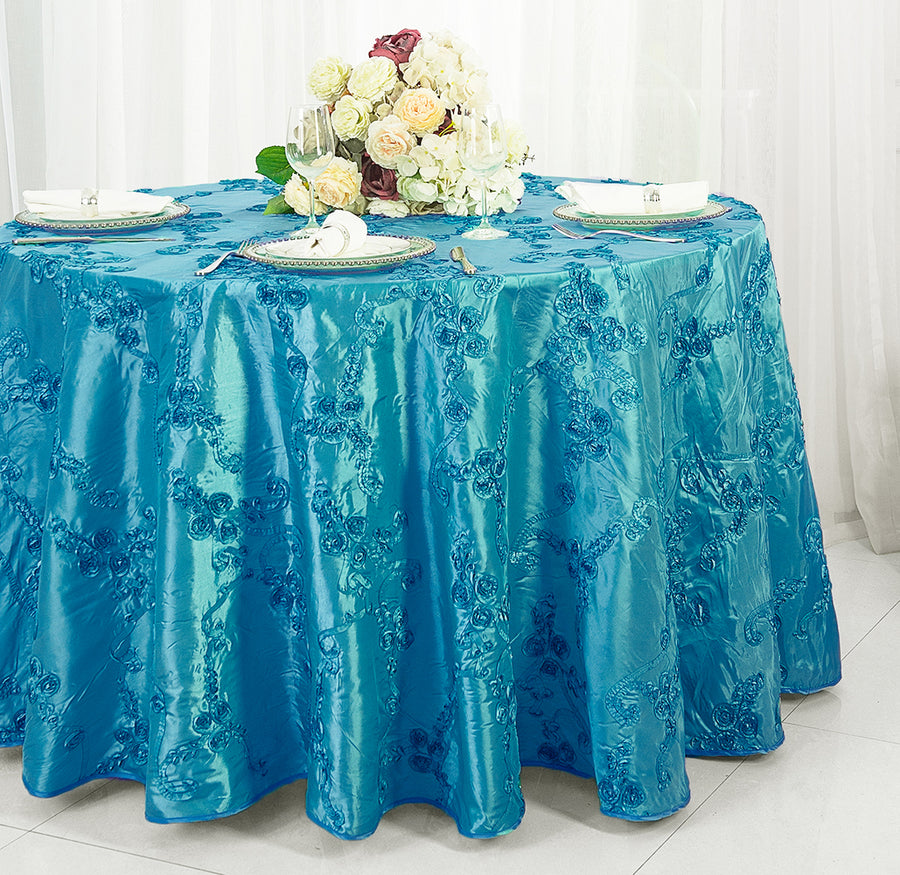 120" Seamless Round Ribbon Taffeta Tablecloth - Turquoise (1pc)