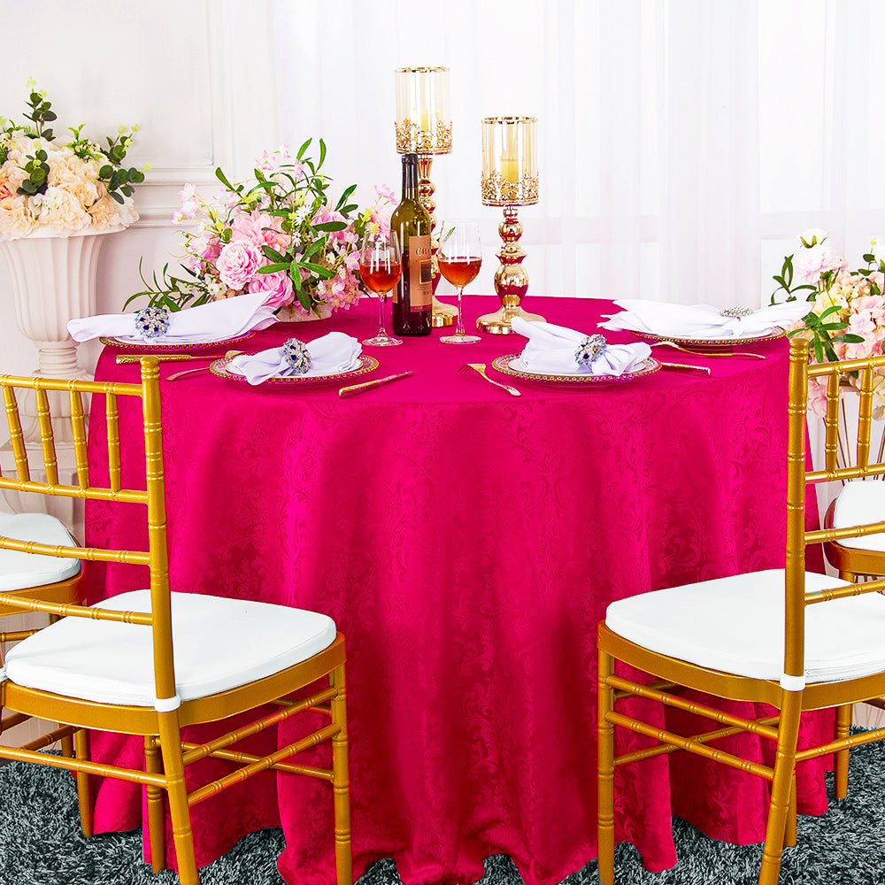 132" Seamless Round Floral Damask Jacquard Polyester (240 GSM) Tablecloth - Fuchsia (1pc)