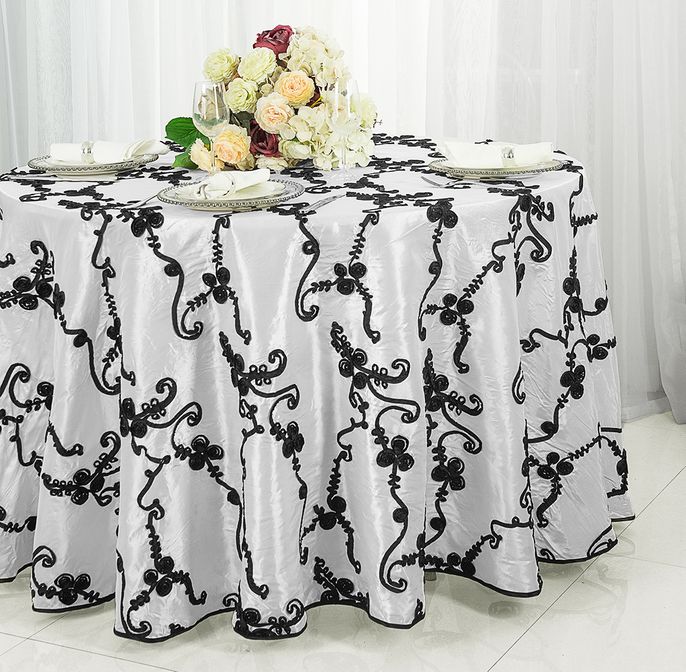 132" Round Ribbon Taffeta Tablecloth - White/Black (1pc)