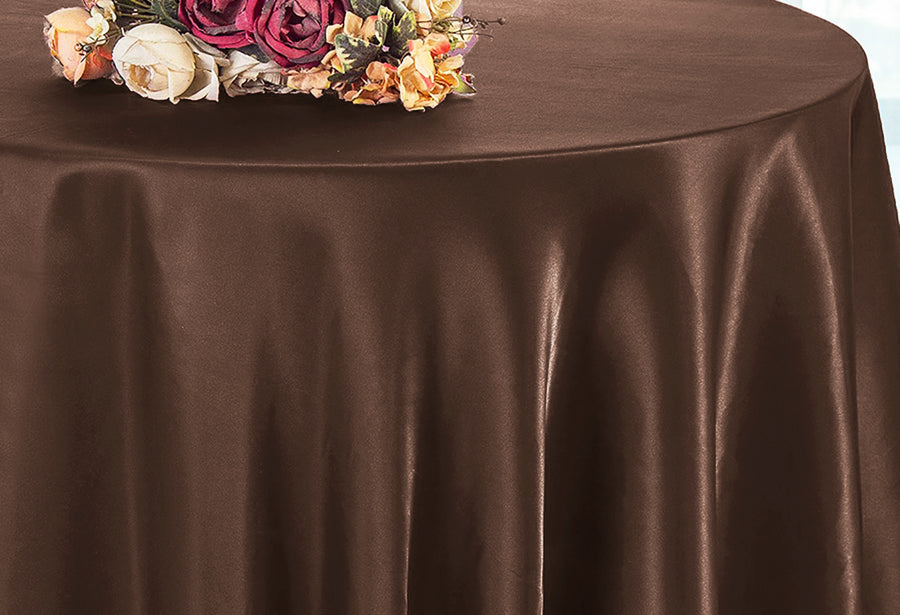 132" Round Heavy Duty Satin Tablecloth - Chocolate (1pc)
