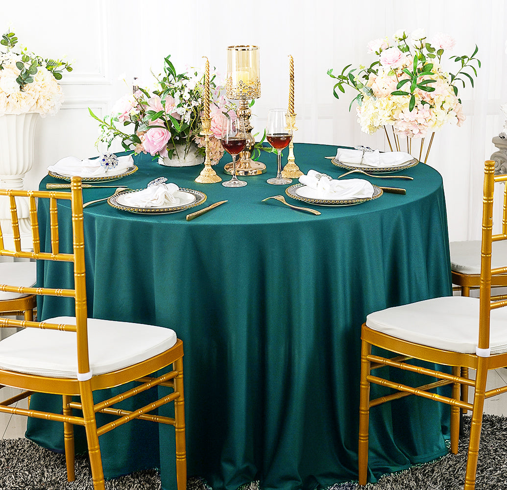 The 132" diameter provides complete coverage for standard 6 ft round tables, while the wrinkle-free material ensures effortless elegance without the ironing hassle, allowing you to focus on creating a memorable atmosphere for your guests.