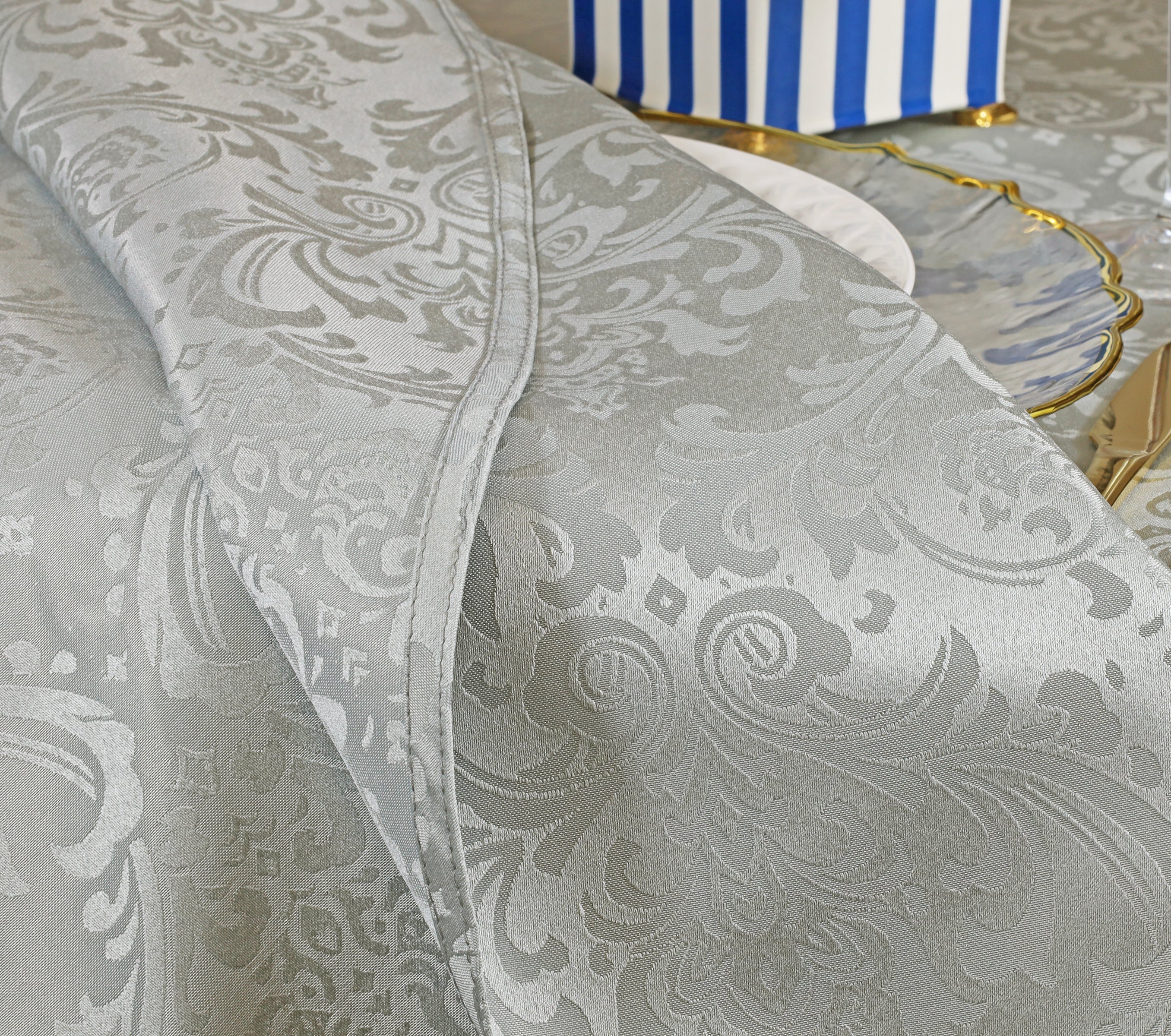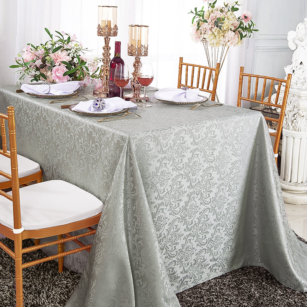 Rectangle Jacquard Damask Polyester Tablecloth Silver