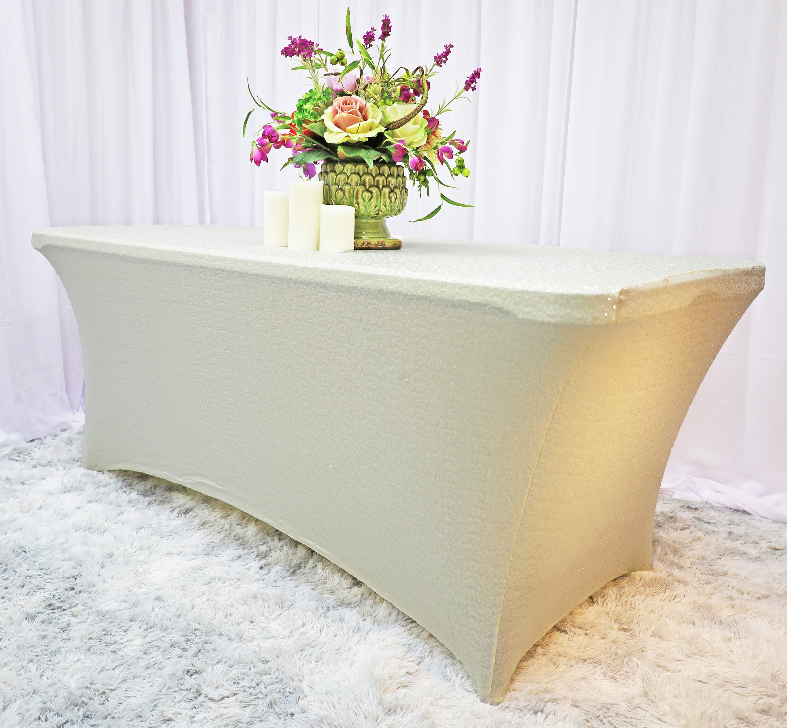 8 Ft Rectangular Sequin Spandex Table Cover - Ivory (1pc)