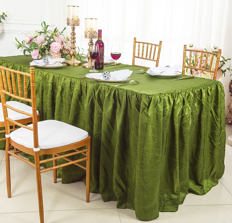 8 Ft Rectangular Ruffled Fitted Crushed Taffeta Tablecloth With Skirt - Moss Green/Olive Green (1pc)