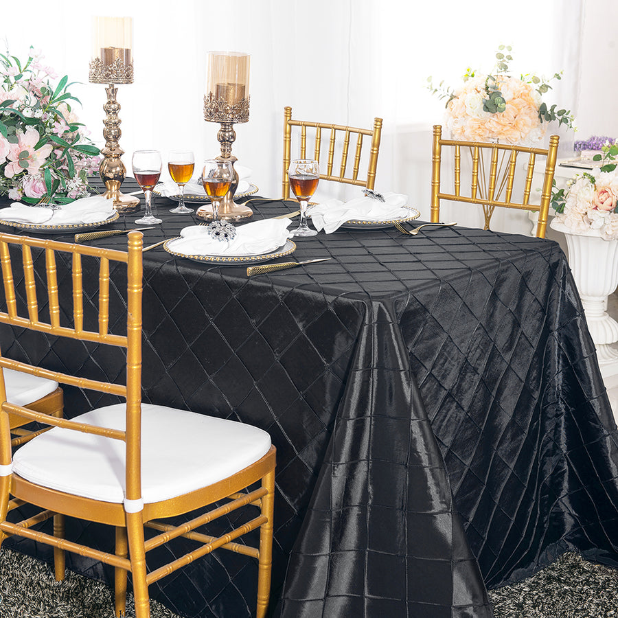 90"x132" Seamless Rectangular Pintuck Taffeta Tablecloth - Black (1pc)
