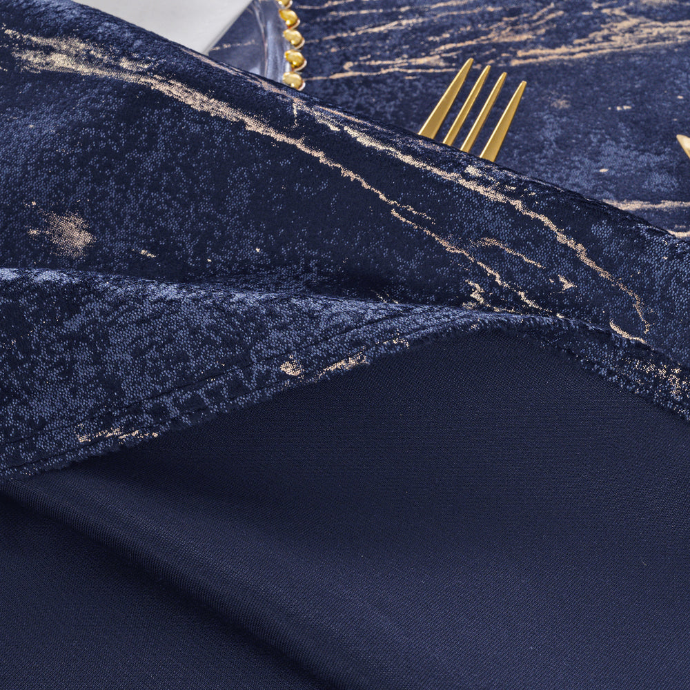 90"x132" Seamless Rectangular Gilded Marble Holland Velvet Tablecloth - Navy Blue (1pc)