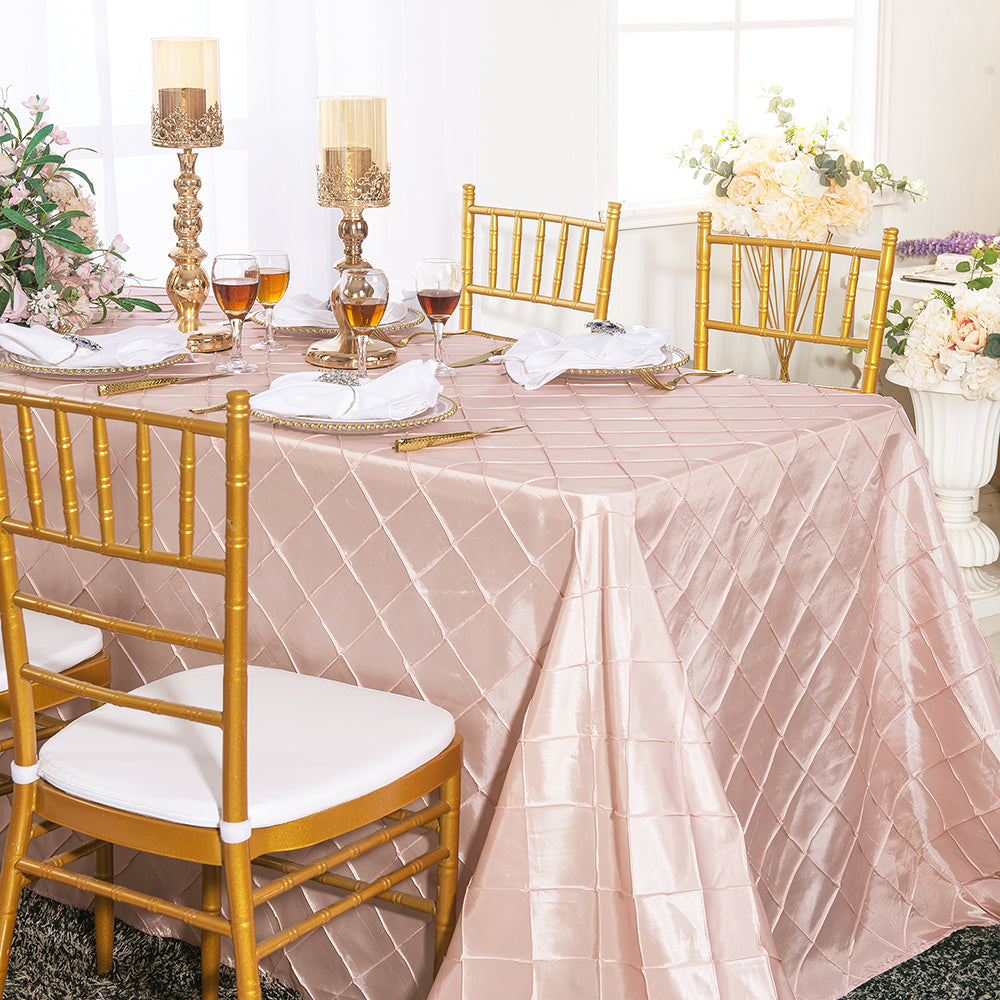 90"x156" Seamless Rectangular Pintuck Taffeta Tablecloth - Blush Pink/Rose Gold (1pc)